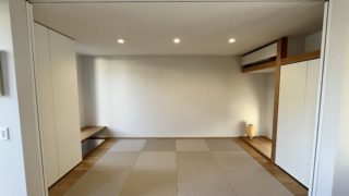 入居前に写真を撮っていなかった和室。最近片付けたタイミングで撮影したので紹介します。 確か9畳です。1階リビング奥に続いていて、来客の寝泊まり用に作りましたが、普段は末っ子のお昼寝用に使っています。また、たまに家族みんなで布...