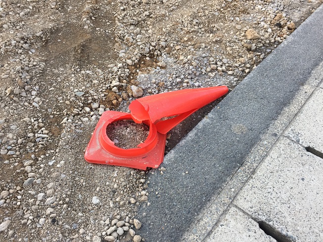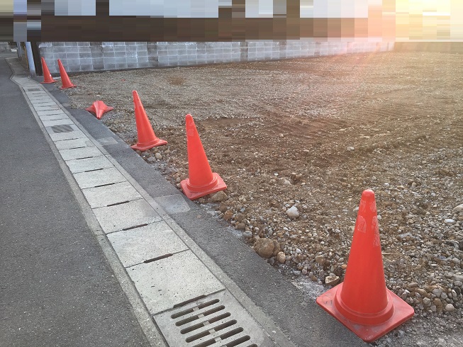 更地になった後、引渡しまでの間、不動産会社が赤いコーンを立ててくれていました。