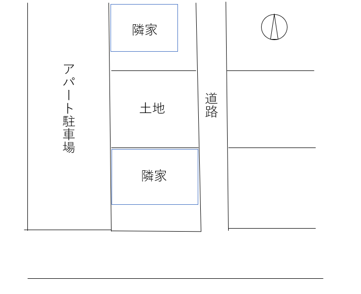 西側はアパートの敷地がありますが、ちょうど駐車場になっています。