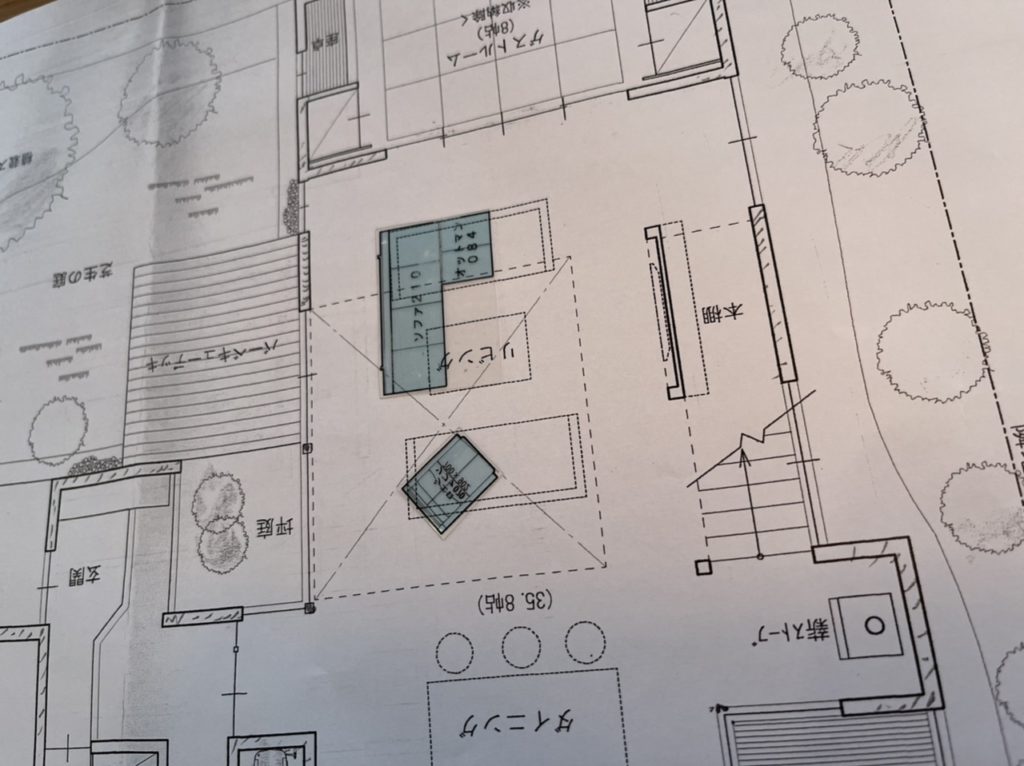 間取り図を見せるとソファのサイズがどのくらいがよいのか見ていただいたり・・・。