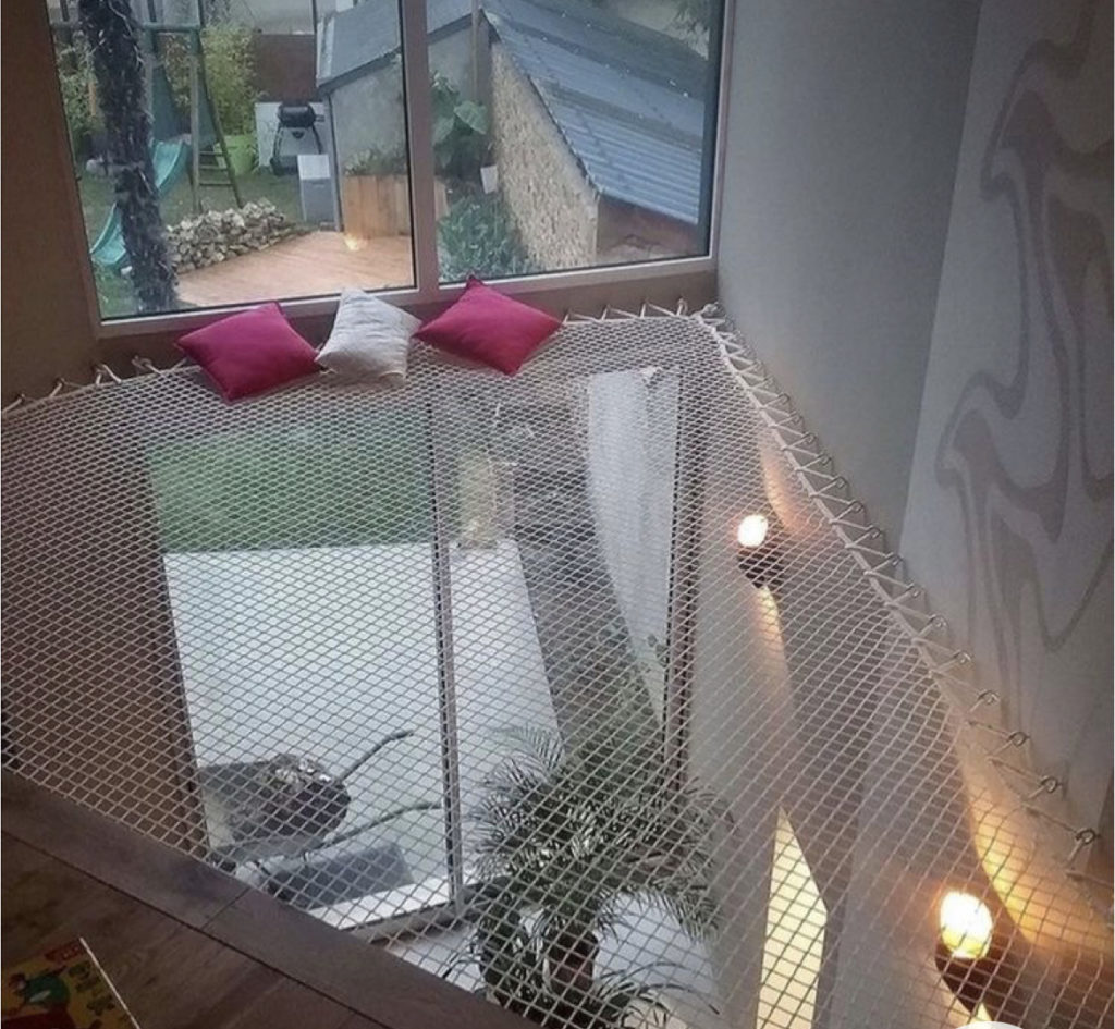 小さな子どもがいる家庭は、よくこんなネットを取り付けてますね。