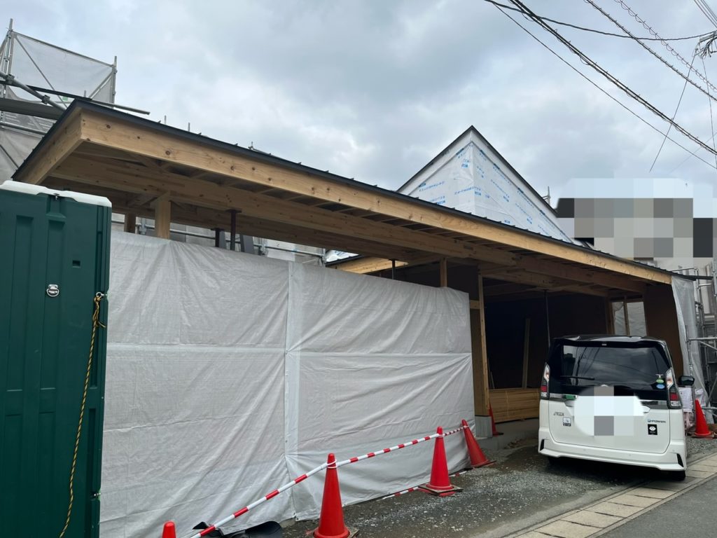 (断熱材吹き付け工事が遅れていて、現時点で工程が2週間ほど遅れています・・・)