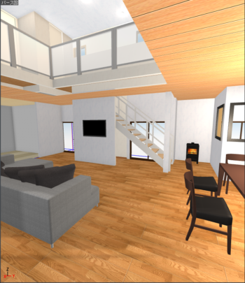 ちなみに天井も吹き抜け部分以外は板貼りで、シミュレーションの通りの向きで考えています。