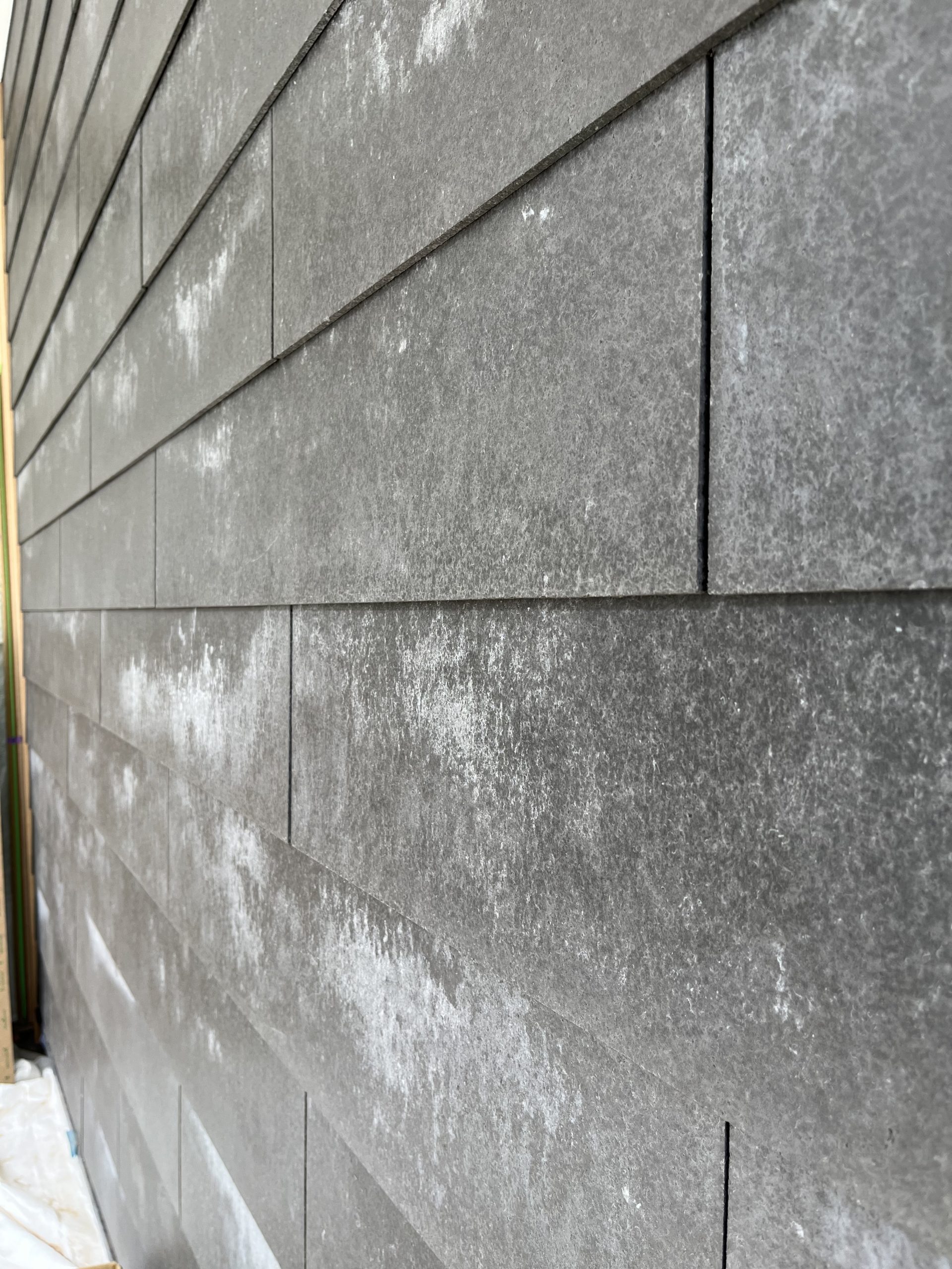 さて、現在の状況ですが、先日現場に行くと、外壁の一部に採用しているSOLIDOが貼られていました。
