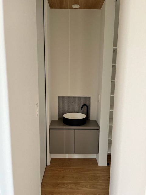 うちは洗面所が2階なので、ここに手洗い場をつくってもらいました。