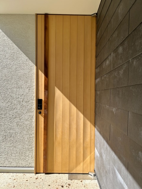 玄関ドアは建築家Mさんデザインで家具やさんで造作してもらいました。