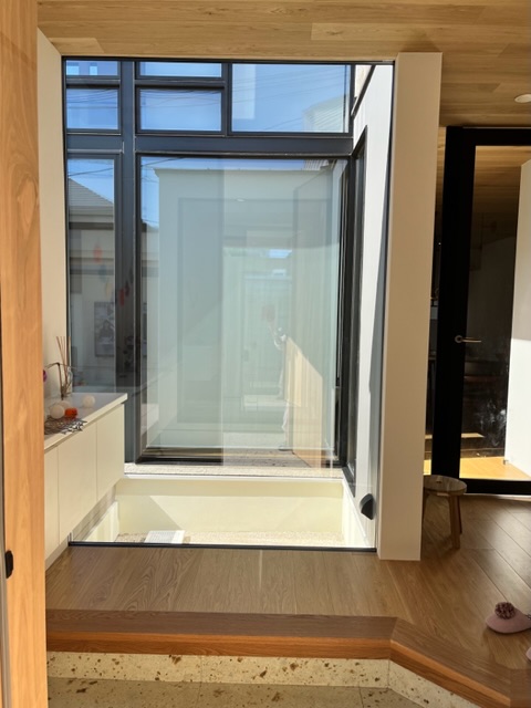 玄関ドアを開けると坪庭の植栽がお出迎え予定。