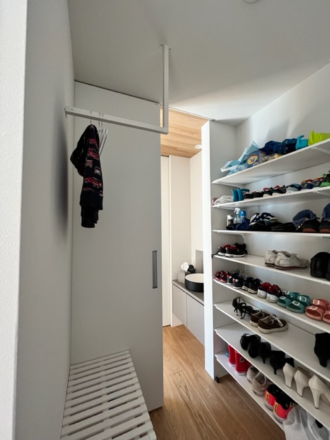 横に長く作ってあるので、家族全員で一斉に靴が履けます。