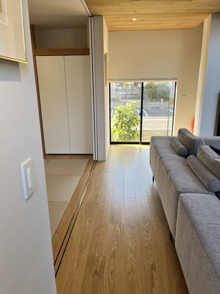 我が家はキッチン、ダイニング、リビングがまっすぐ一直線に繋がる、いわいるI型LDKなのですが、和室によりさらに長いIの字となったことで、空間により開放感が出ています。